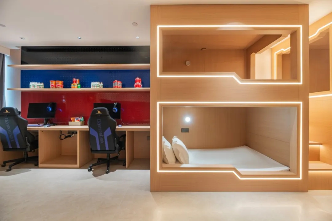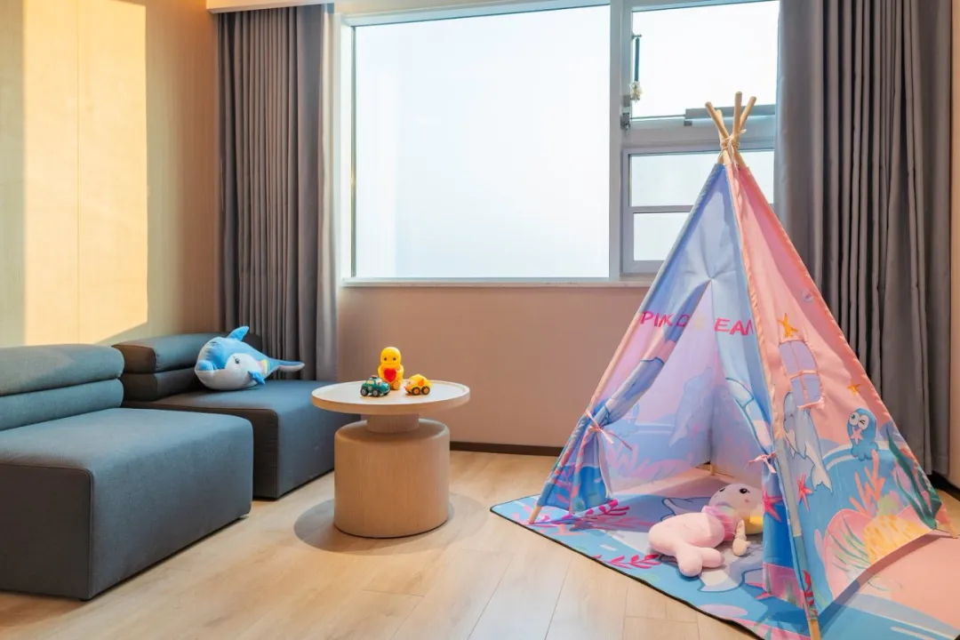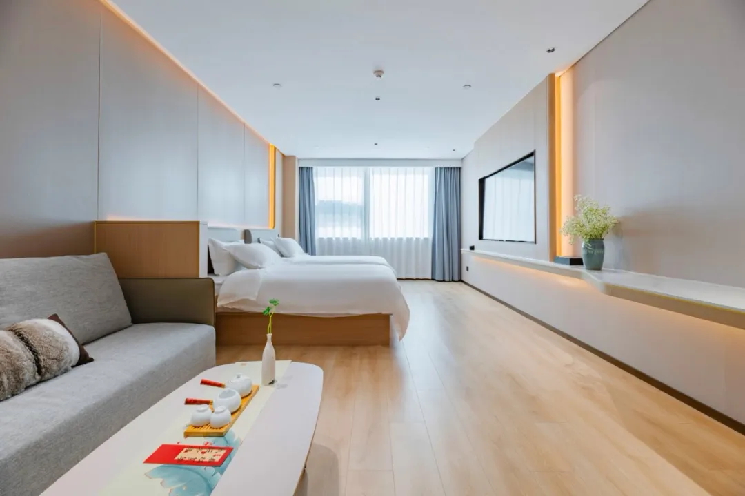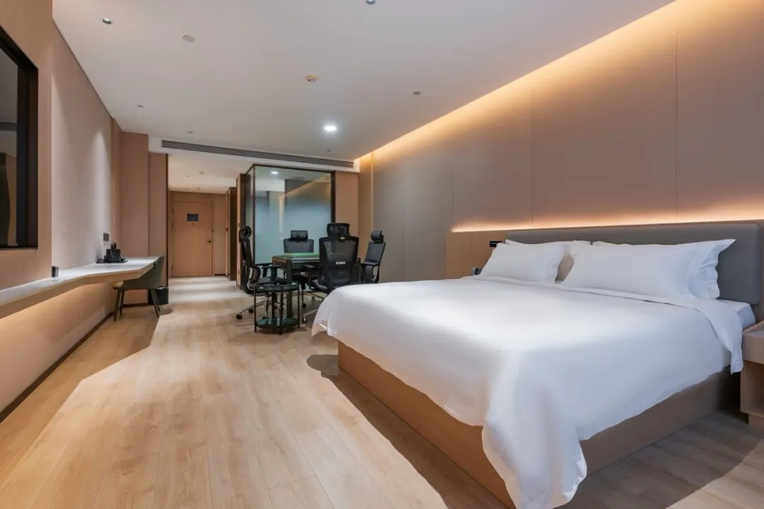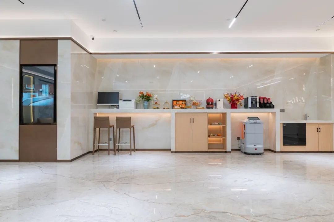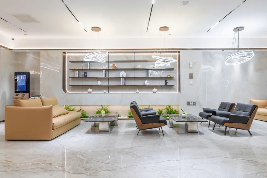 工程地點:河北·正定總麵積:約11000平米主材:岩板、淺木色飾麵板、仿壁布快裝牆板、不鏽鋼等