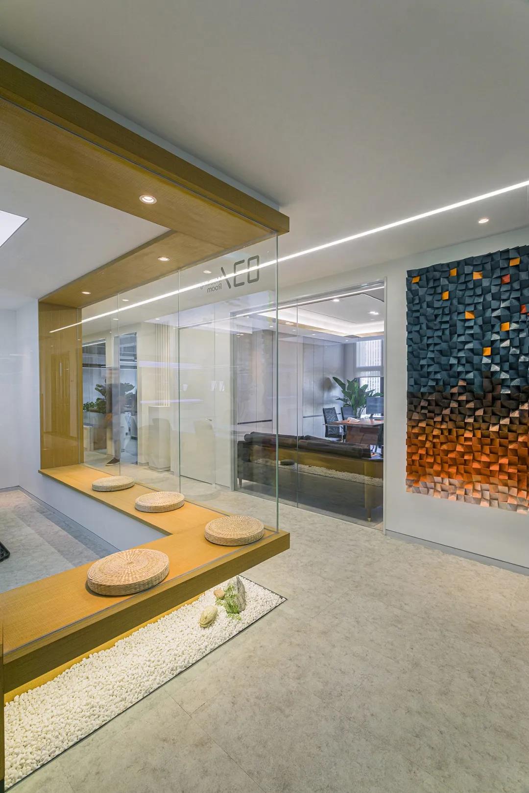 整體(ti) 設計風格向國際化、年輕態傾(qing) 斜。打破傳(chuan) 統建築設計公司厚重、刻板、循規蹈矩的視覺形象;強調體(ti) 塊,在空間重組、建構中的作用,引入“盒子“的概念,通過對盒子的切削、開洞、重組、結合材質變化,賦予每個(ge) 盒子以獨特表情和氣質。