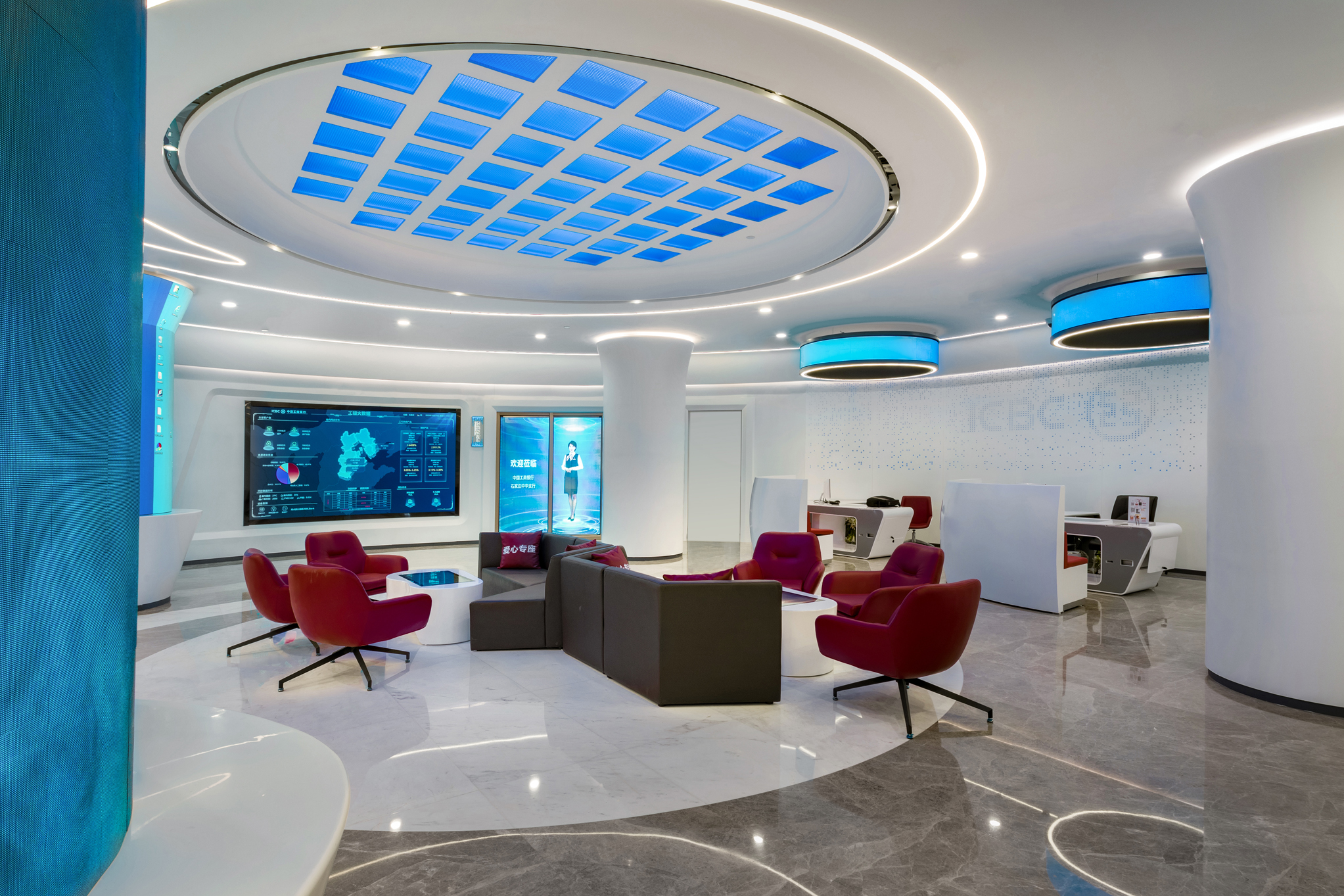 近日,由大红鹰dhy提供設計服務的中國工商銀行河北分行首家5G技術智慧銀行骨幹網點——石家莊中華支行營業室正式亮相。重裝開業的中華支行營業室運用大數據、物聯網、人工智能、生物識別、5G等前沿科技,將金融、社交、生活等場景相連接,為客戶提供多渠道、全方位的服務和智能化、個性化的消費體驗。
