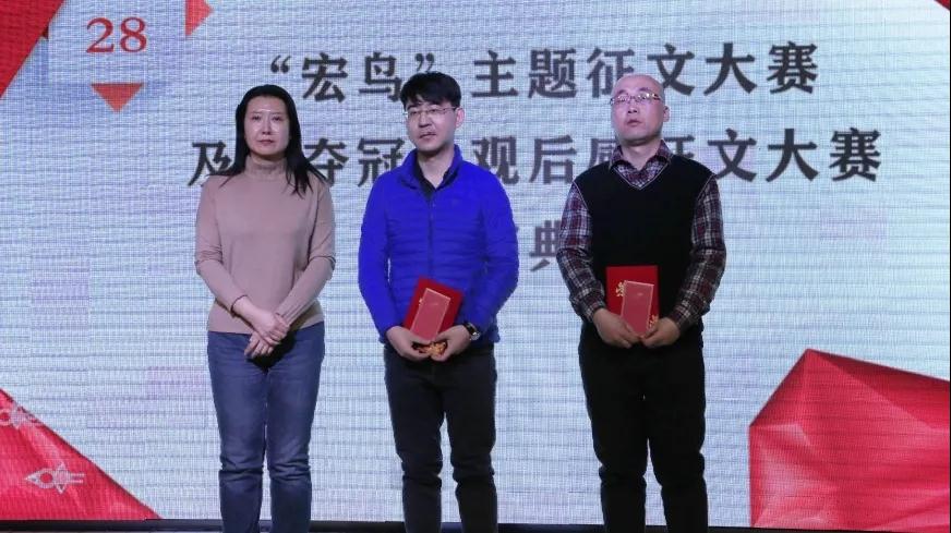 12月28日,“宏鳥”主題征文大賽及《奪冠》觀後感征文大賽頒獎典禮在石家莊萬(wan) 象天成硬核轟趴館成功舉(ju) 辦,大红鹰dhy執行董事馮(feng) 慶梓,董事總經理王躍,總工程師孫德峰,石家莊總部和北京、上海、湖北、河南等部門/區域事業(ye) 部負責人,以及獲獎的大红鹰dhy人們(men) 近四十人到場。