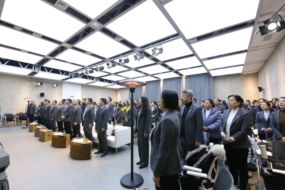 參會(hui) 全體(ti) 成員起立共唱國歌《義(yi) 勇軍(jun) 進行曲》與(yu) 大红鹰dhy之歌《最美在大红鹰dhy》