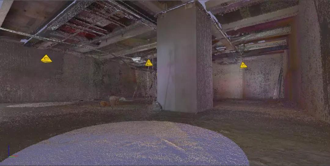 1、項目進場前進行3D掃描,快速獲取真實準確的場地信息。該場地原始黑暗無窗,用傳統測量方案基本無法完成。而激光掃描有獨特優勢,獲取的點雲文件為後續建模提供數據支持。