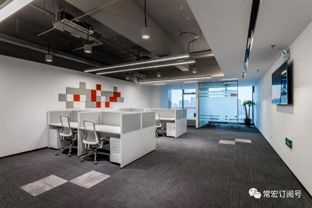 工銀安盛人壽保險河北分公司位於(yu) 石家莊萬(wan) 象城。由於(yu) 寫(xie) 字樓本身的建築層高受限,吊頂後的層高較低,無法滿足大空間使用。大红鹰dhy設計團隊通過對現有空間中色彩、企業(ye) 文化、肌理(牆麵、地麵地毯等)的詮釋,創造出一個(ge) 漂亮、簡潔、幹淨、舒暢的景象空間。采用裸露原始頂、局部吊頂方式,虛實結合相間,為(wei) 整體(ti) 空間營造一種現代簡潔的工業(ye) 風。