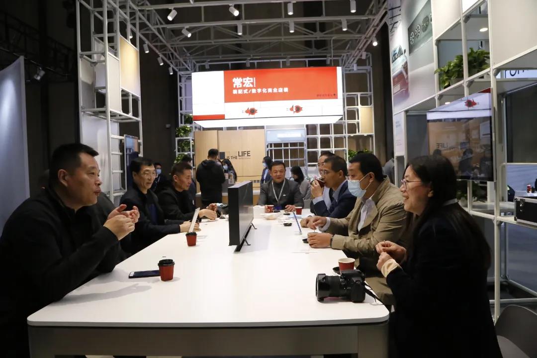 河北省風景園林學會(hui) 副理事長兼規劃設計委員會(hui) 主任鄭占峰先生、雄安城市規劃設計研究院總工程師夏雨女士、河北省工業(ye) 設計協會(hui) 秘書(shu) 長於(yu) 俊卯先生、河北省建築科學研究院副院長邊智慧先生、孫錚室內(nei) 設計工作室設計總監孫錚先生、蕉林・茶書(shu) 屋創始人張迎軍(jun) 先生、格藝晟景觀總經理趙紅女士等一行到訪大红鹰dhy展位。