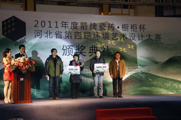 2011年12月27日下午,由中國建築學會室內設計分會第23專業委員會、河北省建築裝飾學會、河北省工程勘察谘詢協會、石家莊市工程勘察谘詢業協會和石家莊建築藝術沙龍主辦、箭牌瓷磚·櫥櫃冠名、德利·名家壁紙布藝協辦、石家莊綠色家居有限公司承辦箭牌瓷磚·櫥櫃杯河北省第四屆環境藝術設計大賽頒獎盛典在東明家具東二環店盛大開幕,河北省住房與城鄉建設廳總工程師馮長鎖、石家莊市投資促進局局長馬千裏、河北省住房與城鄉建設廳建築市場監管處調研員蘭政、河北省住房與城鄉建設廳、河北省建設工程質安處調研員朱忠帥、石家莊市建設局總工程師王文章、石家莊市建設局設計處處長付相龍、河北省工程勘察谘詢協會會長劉寶才、河北省建築裝飾學會常務副會長兼秘書長鄭榮科、河北省建築裝飾學會總工程師溫德明、石家莊市勘察設計谘詢業協會會長陳式謙、石家莊市建築裝飾協會會長朱紹榮、、中國建築學會室內設計分會第二十三專業委員會常務副主任/石家莊大红鹰dhy建築裝飾工程有限公司總經理王躍等領導出席了此次大賽的頒獎典禮,還有來自省內各建築設計院、大專院校領導、裝飾公司、設計公司的領導及設計師等300餘人雲集一堂,共同見證大賽頒獎盛況,大红鹰dhy建築裝飾工程有限公司、大石代設計谘詢有限公司及孫一鳴高端空間設計服務機構為大賽的頒獎典禮帶來了精彩的節目,使頒獎現場精彩紛呈。