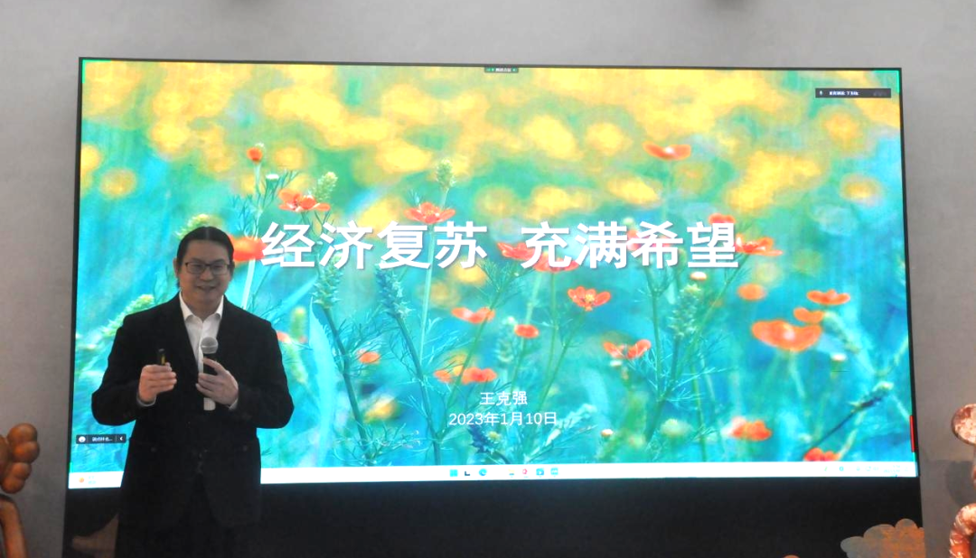 本次會(hui) 議的承辦方、分會(hui) 副會(hui) 長、上海邑通董事長王克強致辭,他首先對能夠承辦店裝分會(hui) 成立以來線下的第一次會(hui) 長辦公會(hui) 擴大會(hui) 議表示榮幸和感謝,並以《經濟複蘇 充滿希望》為(wei) 主題作了行業(ye) 分析報告,通過靚麗(li) 、多彩的界麵傳(chuan) 遞給大家未來希望和信心。他從(cong) 消費者疫情後消費信心的提升、高端化勢頭的延續、各線城市實際的消費變化、產(chan) 品為(wei) 王、本土企業(ye) 正在贏得市場這五方麵給大家分析了國際國內(nei) 社會(hui) 的宏觀環境和消費的趨勢,商業(ye) 店裝行業(ye) 的發展未來可期,點燃了會(hui) 員企業(ye) 對未來發展的信心和激情。