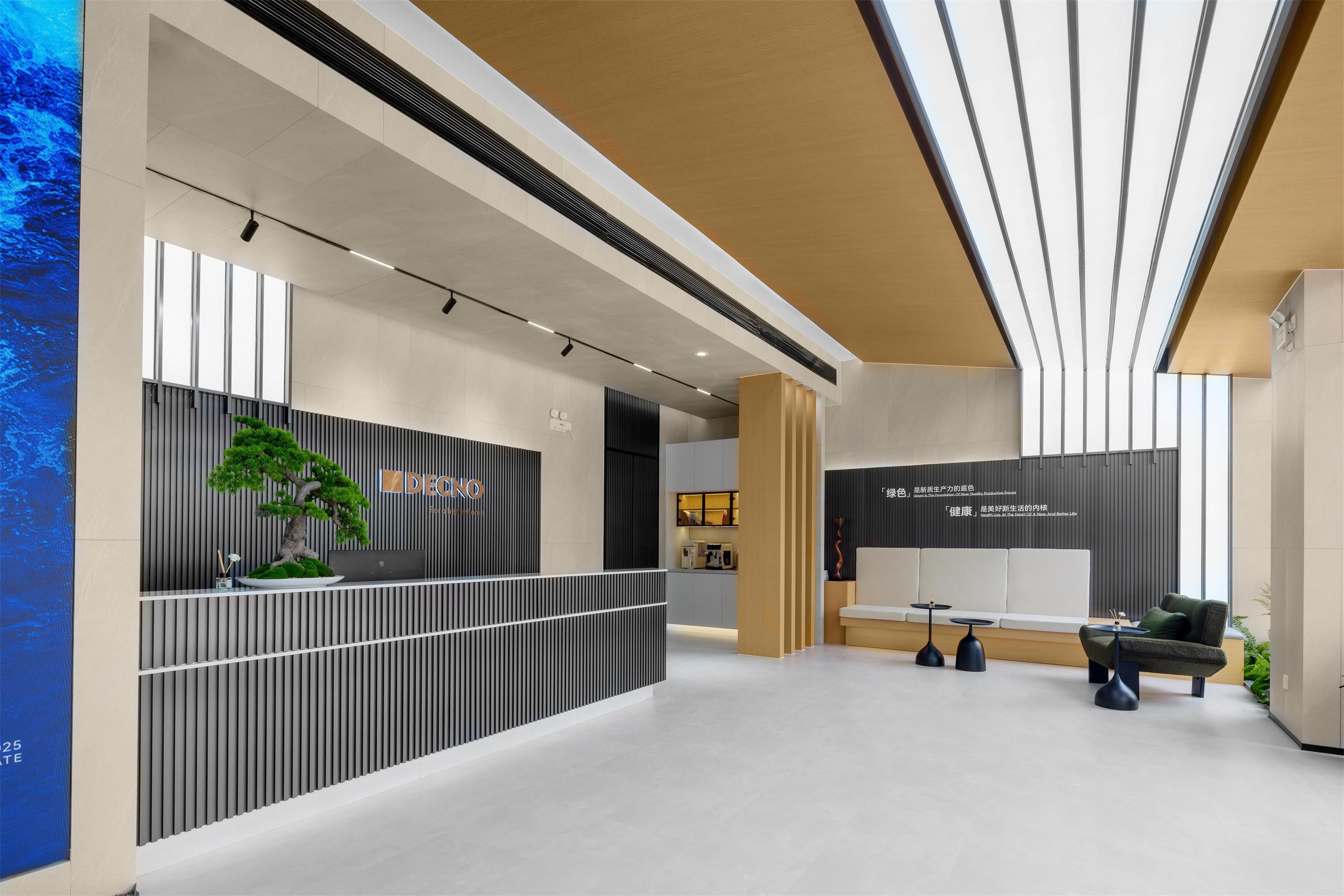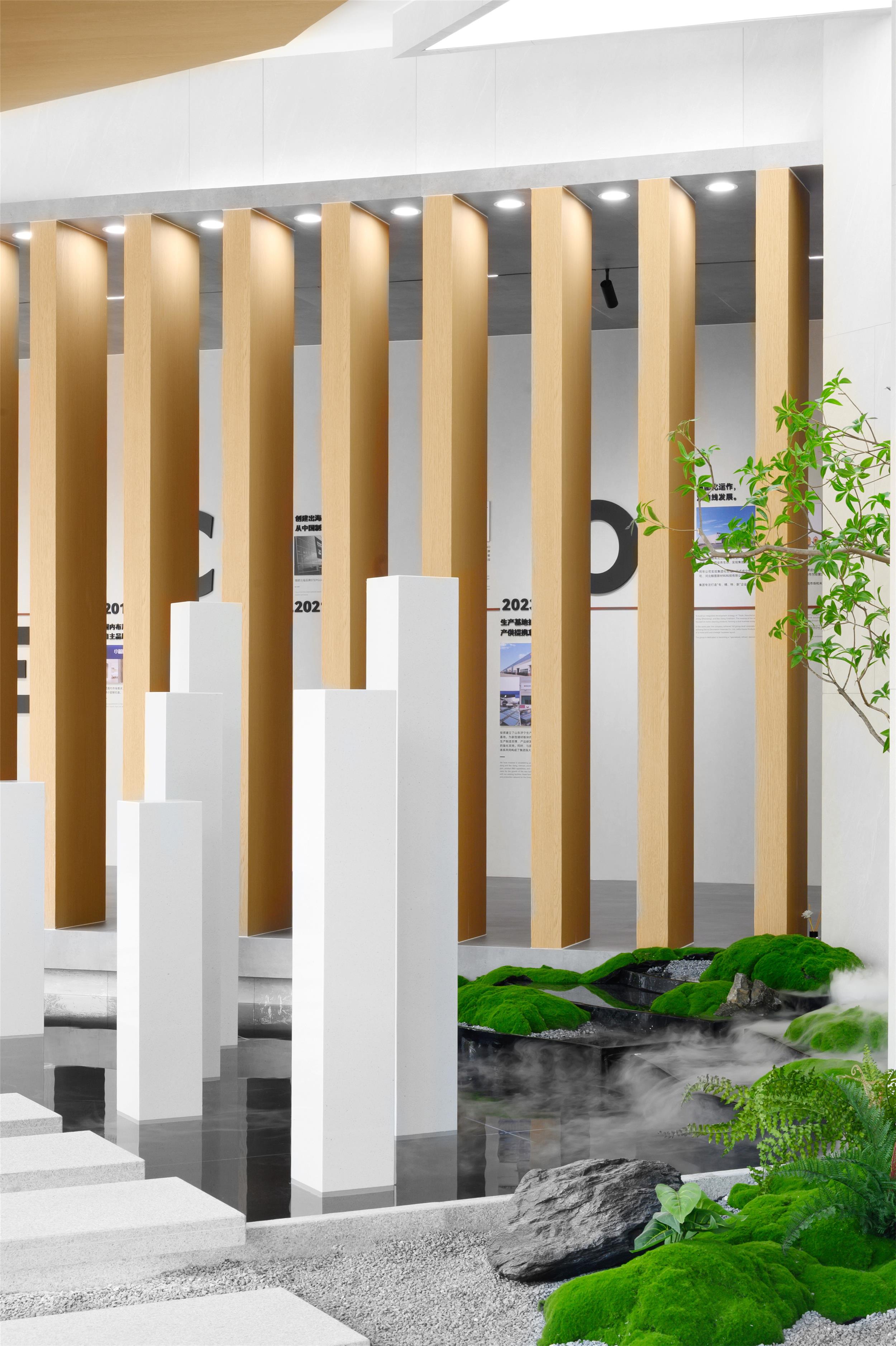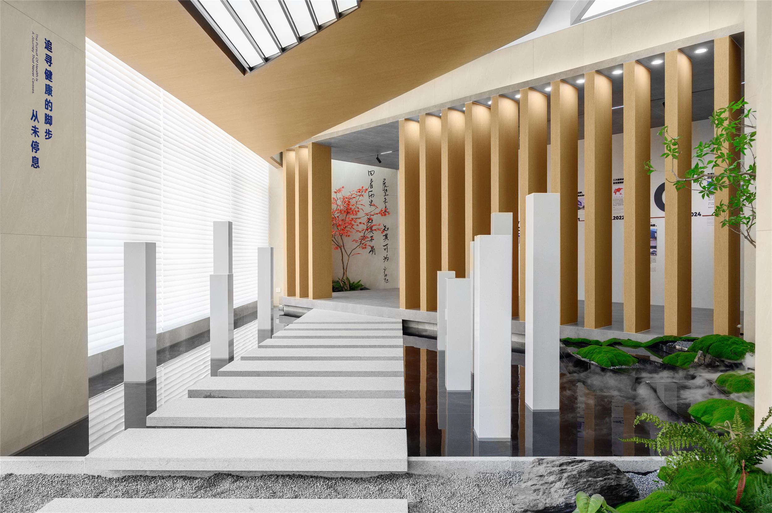 小藍鯨正定保稅區品牌形象展廳立足於企業曆史文化的戰略性總結,以524平方米的一層空間為載體,融合品牌宣傳、產品展示、客戶接待等多重功能。作為連接辦公空間與生產園區的樞紐,展廳不僅承載著品牌形象的對外傳播,更通過設計的力量,將企業文化與創新精神具象化。